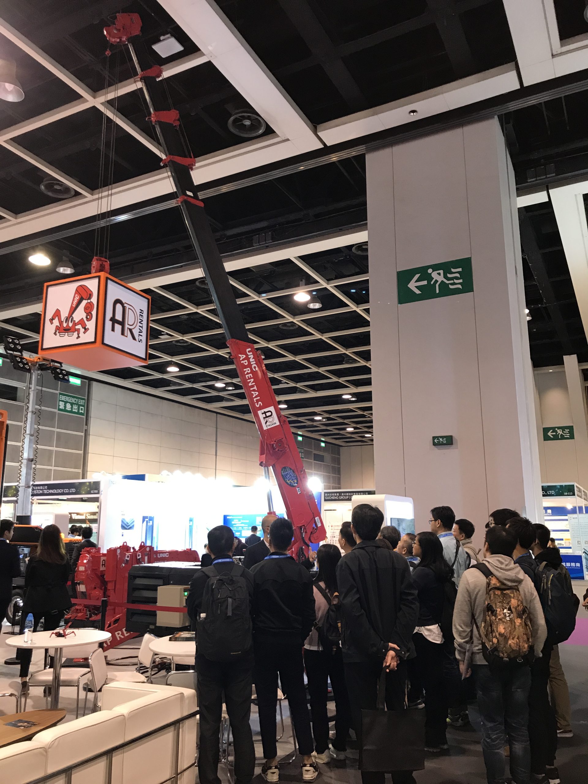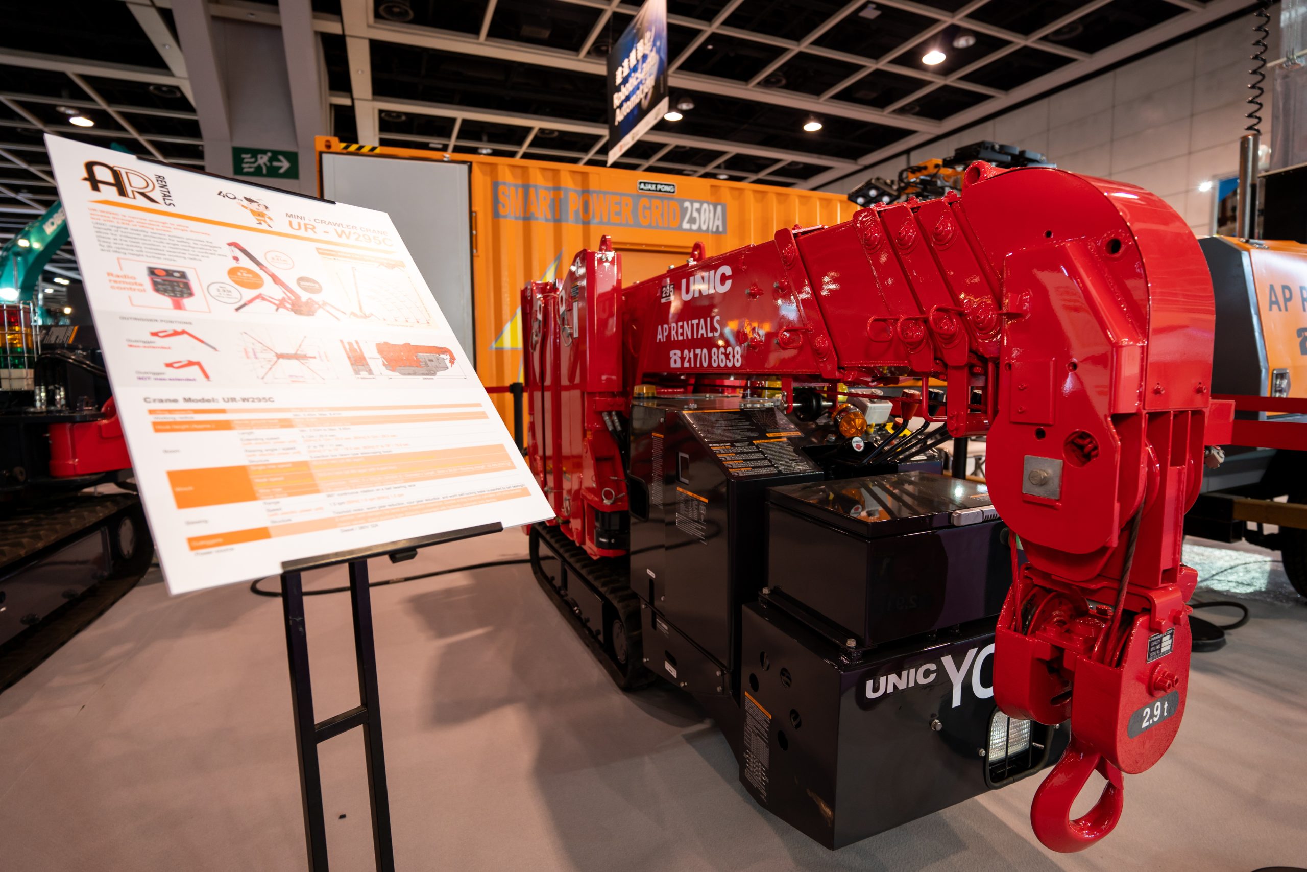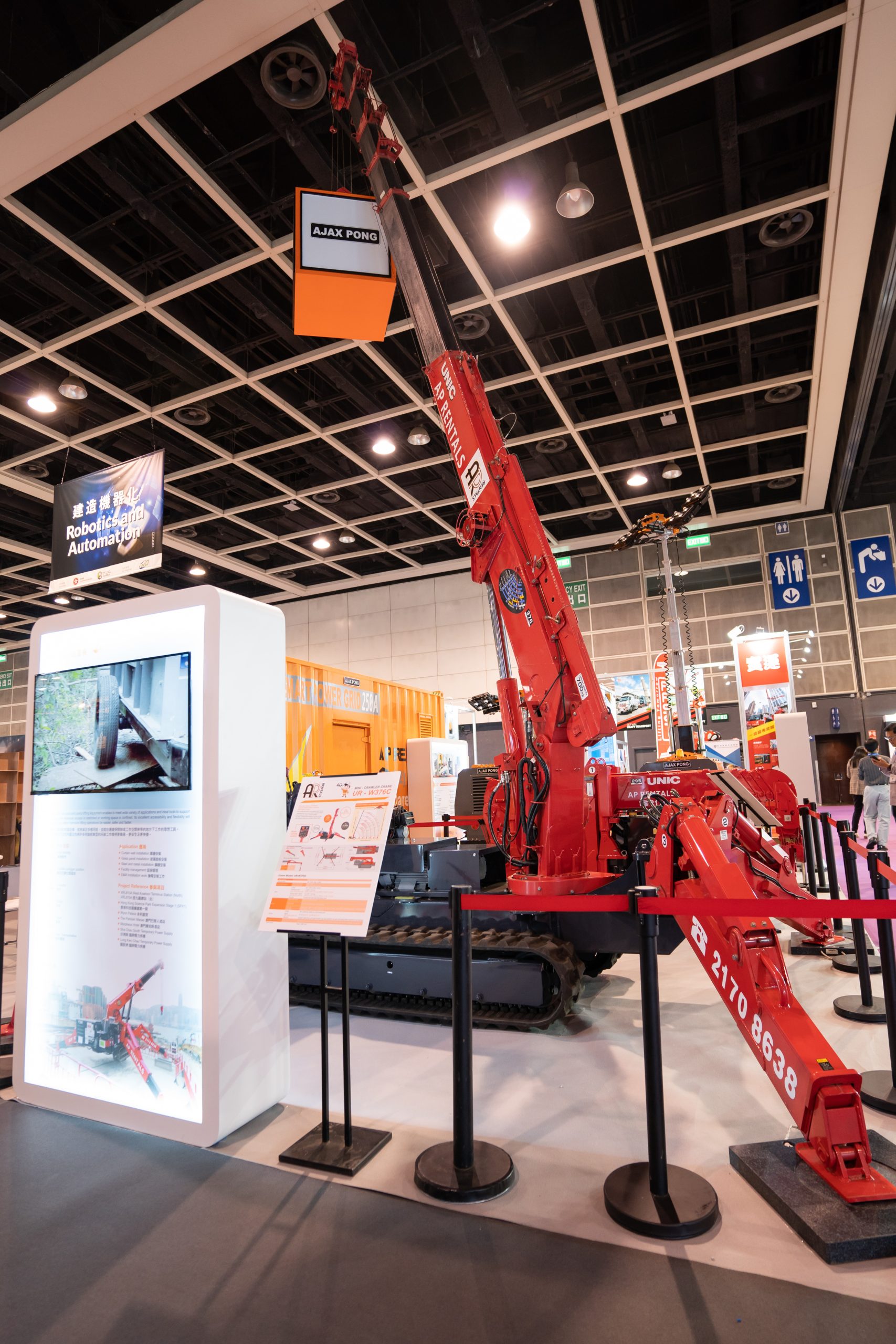 同場亦展出兩台蜘蛛式起重機,包括型號UR-W295C及UR-W376C,讓大家了解蜘蛛式起重機的特點-靈巧機身、強大吊重力及潔淨環保。