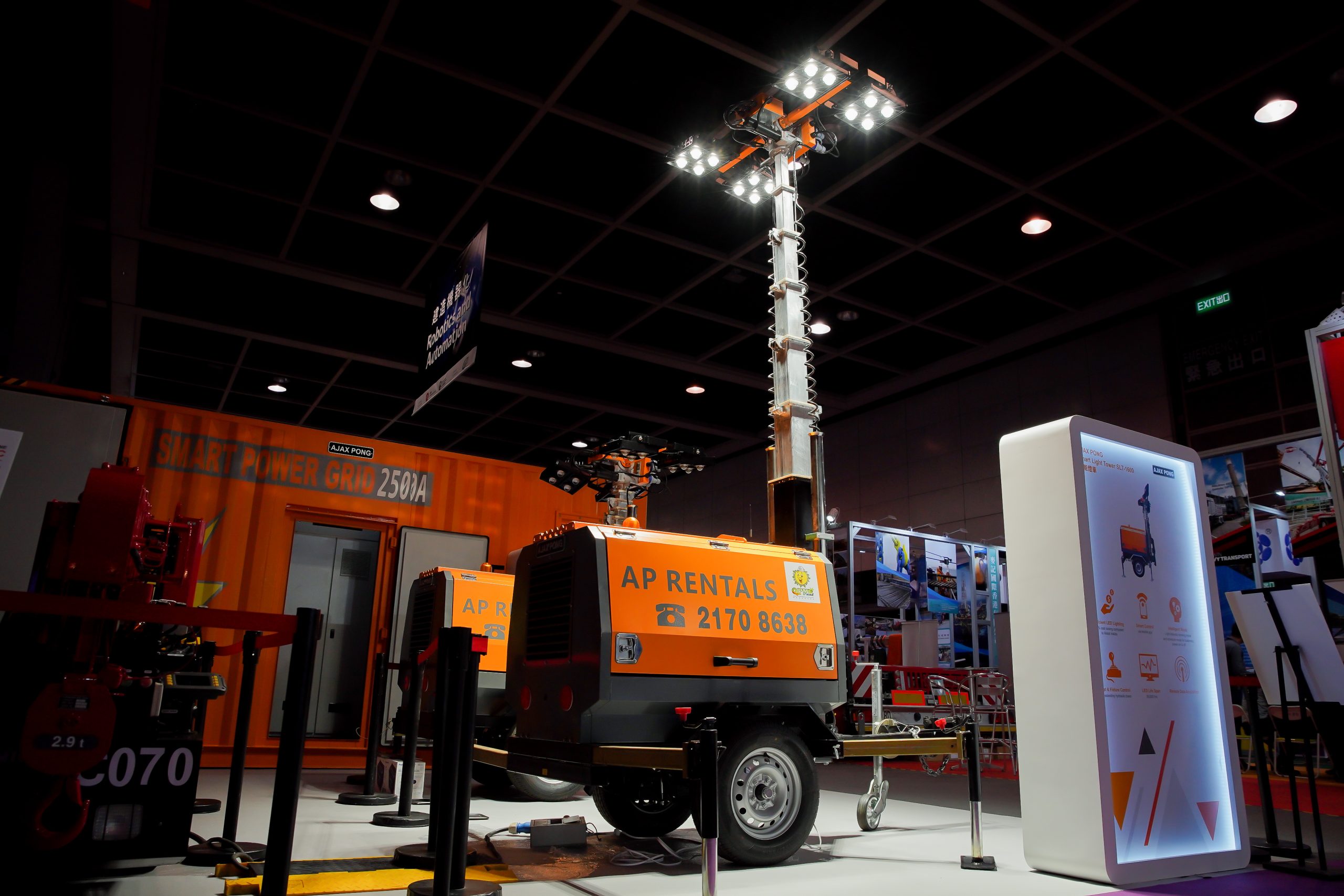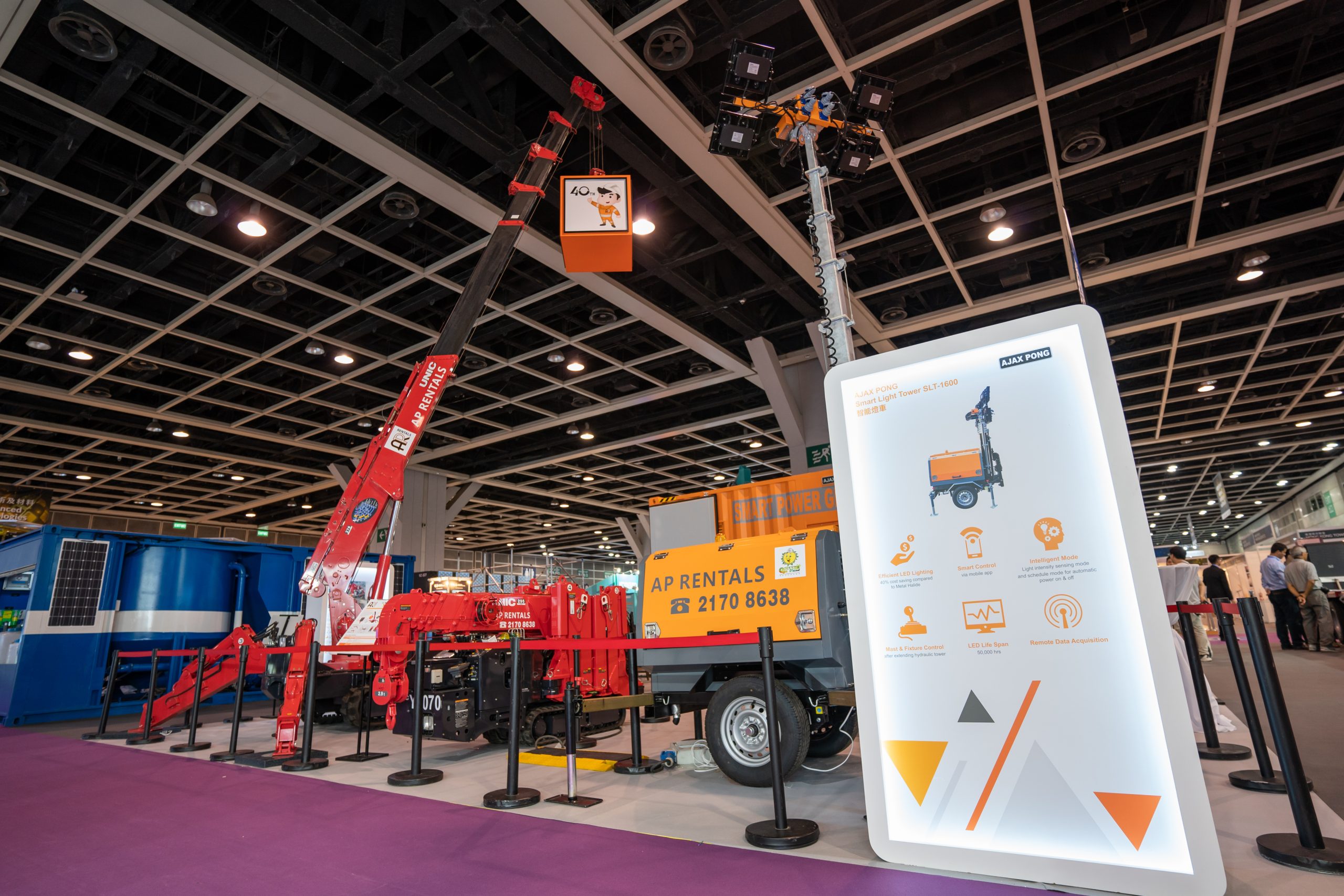 為配合展覽會創新主題,我們首次展出一系列配備智能系統的機械,包括智能流動電力系統及智能燈塔。智能系統能為用家大大降低油耗,節省成本之餘,並減少噪音及碳排放;維修人員亦可遙距操作及實時監察機械,提供更適切快捷的維修保養服務,提高生產力。